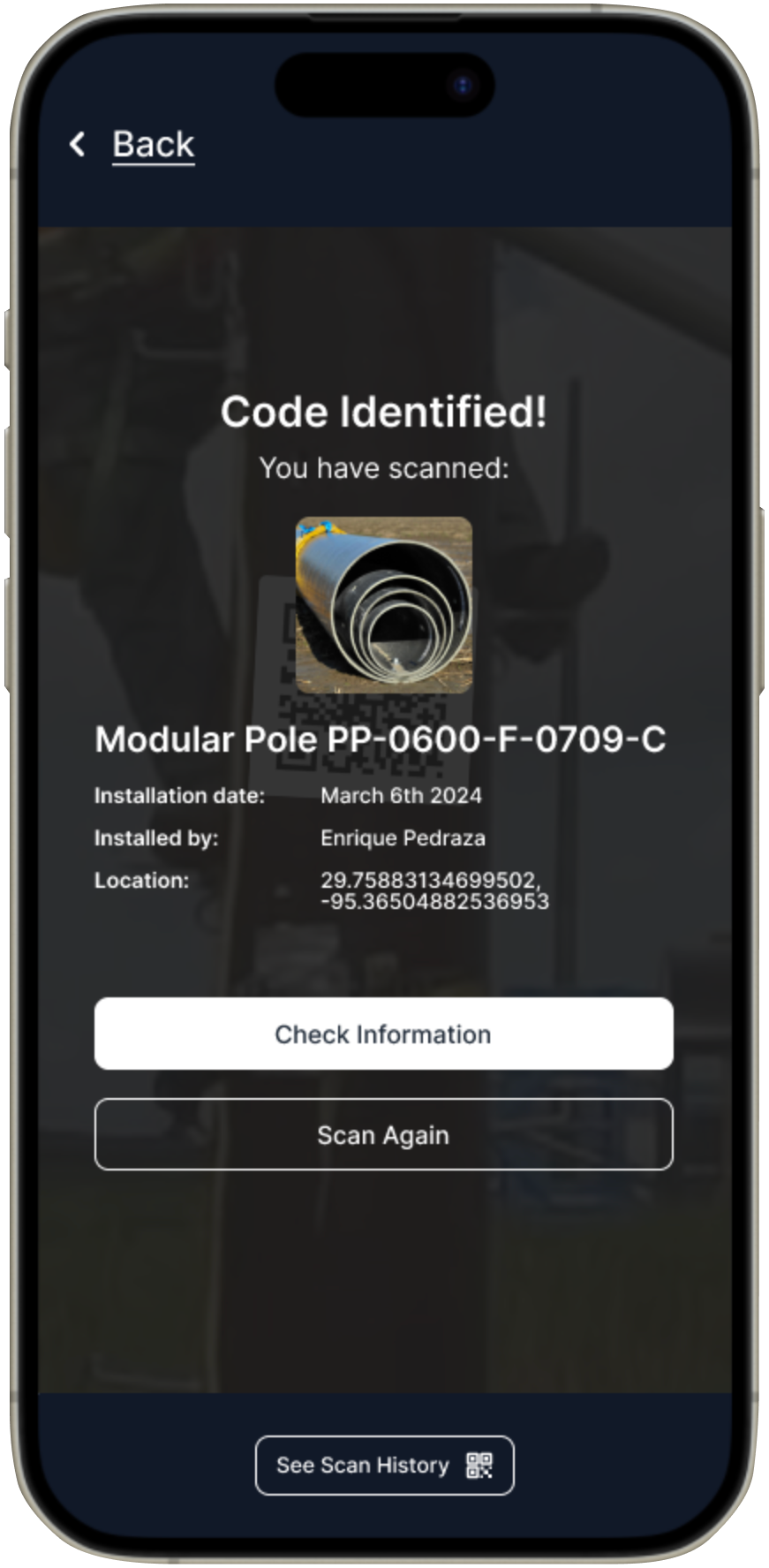 No reliable way to look up a pole's installation history in the field contributed to incorrect installations and inaccurate warranty tracking.